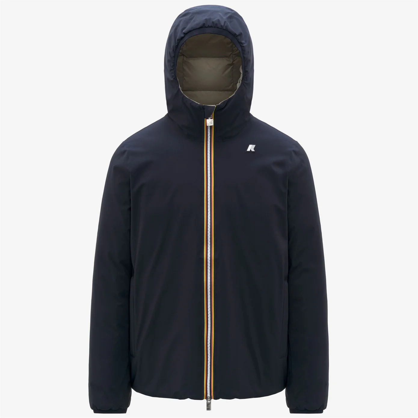 Giacca corta da uomo Jack pensata per il clima più rigido perchè imbottita in piuma. Il modello si caratterizza per il design reversibile con un lato in tessuto tecnico liscio e l'altro in nylon trapuntato dal colore a contrasto. Il cappuccio, le tasche, la chiusura con zip e la flap antivento sono dettagli funzionali che proteggono dal freddo.