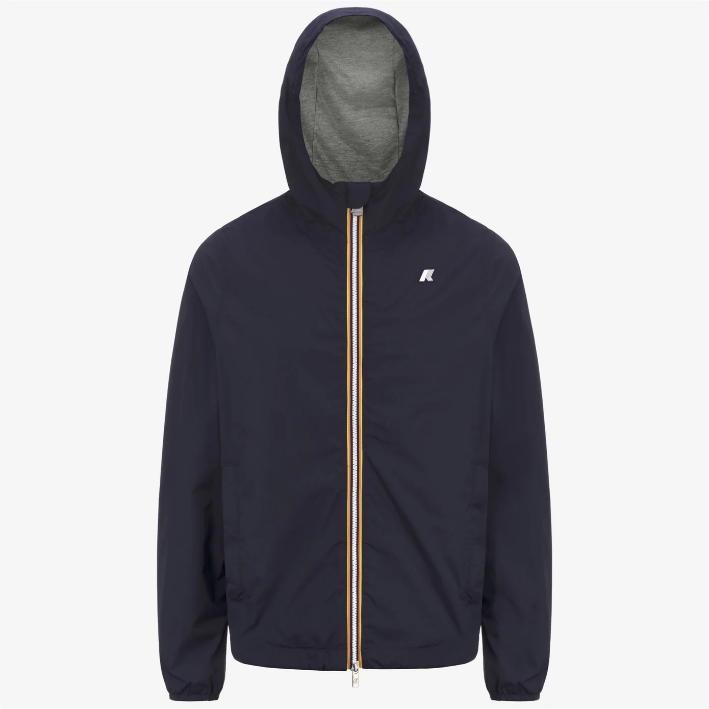 Jack è una giacca da uomo con vestibilità slim, realizzata in nylon stretch resistente agli agenti atmosferici e rifinita con una fodera in morbido jersey di cotone grigio melange applicata solo su fronte e retro, per garantire comfort superiore e una piacevole sensazione a contatto con la pelle. Linterno è curato nei dettagli con cuciture termonastrate e liconico tape multicolor K-Way applicato al punto vita, che aggiunge una nota distintiva al design.