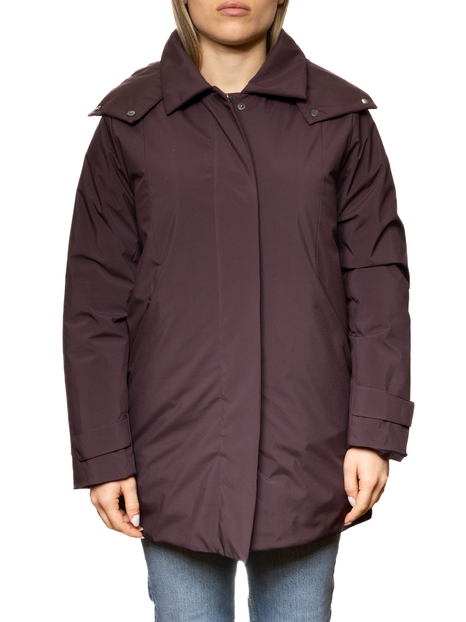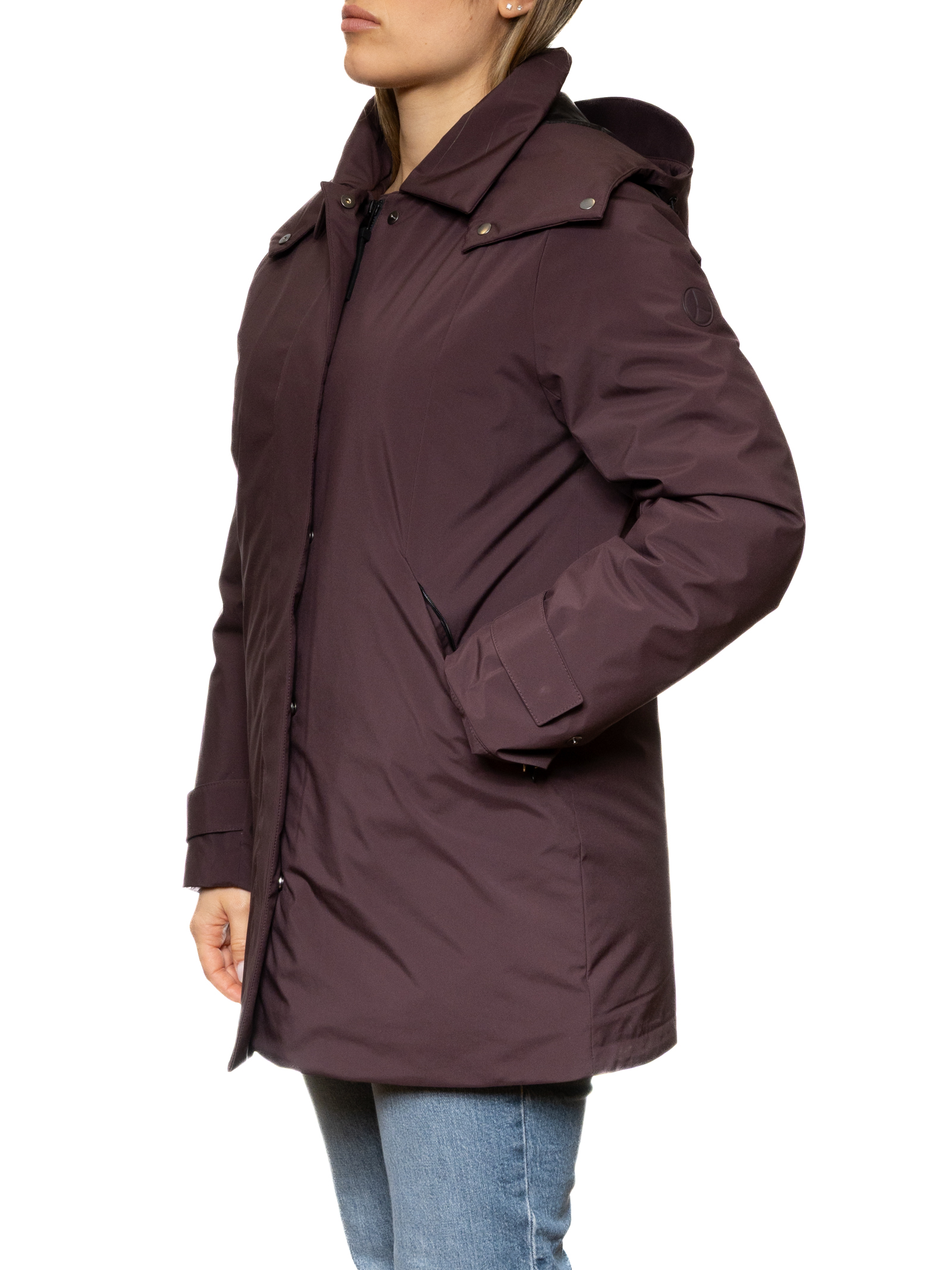 Giaccone donna in tessuto cotone nylon colore bordeaux con imbottitura ecologica.