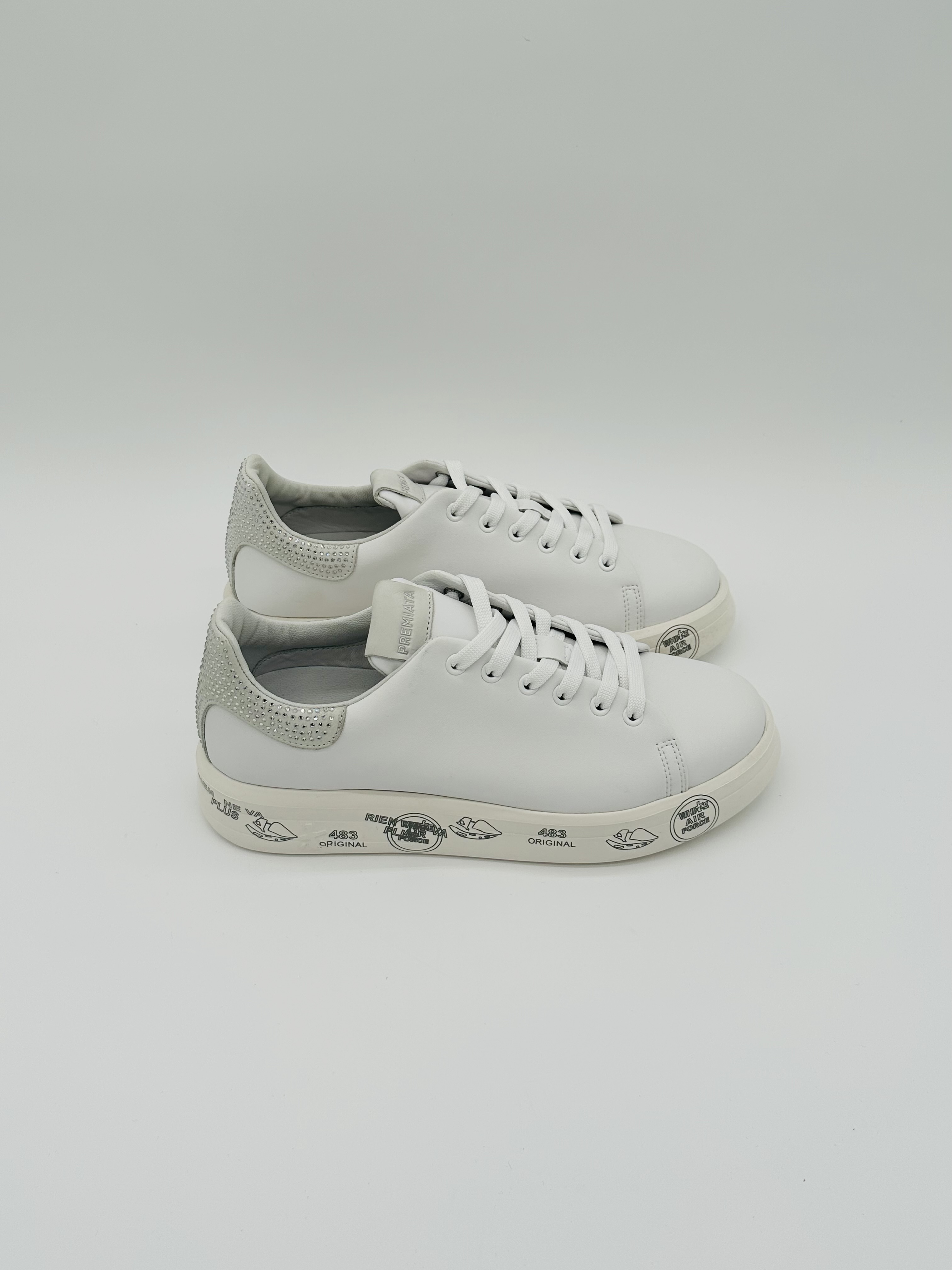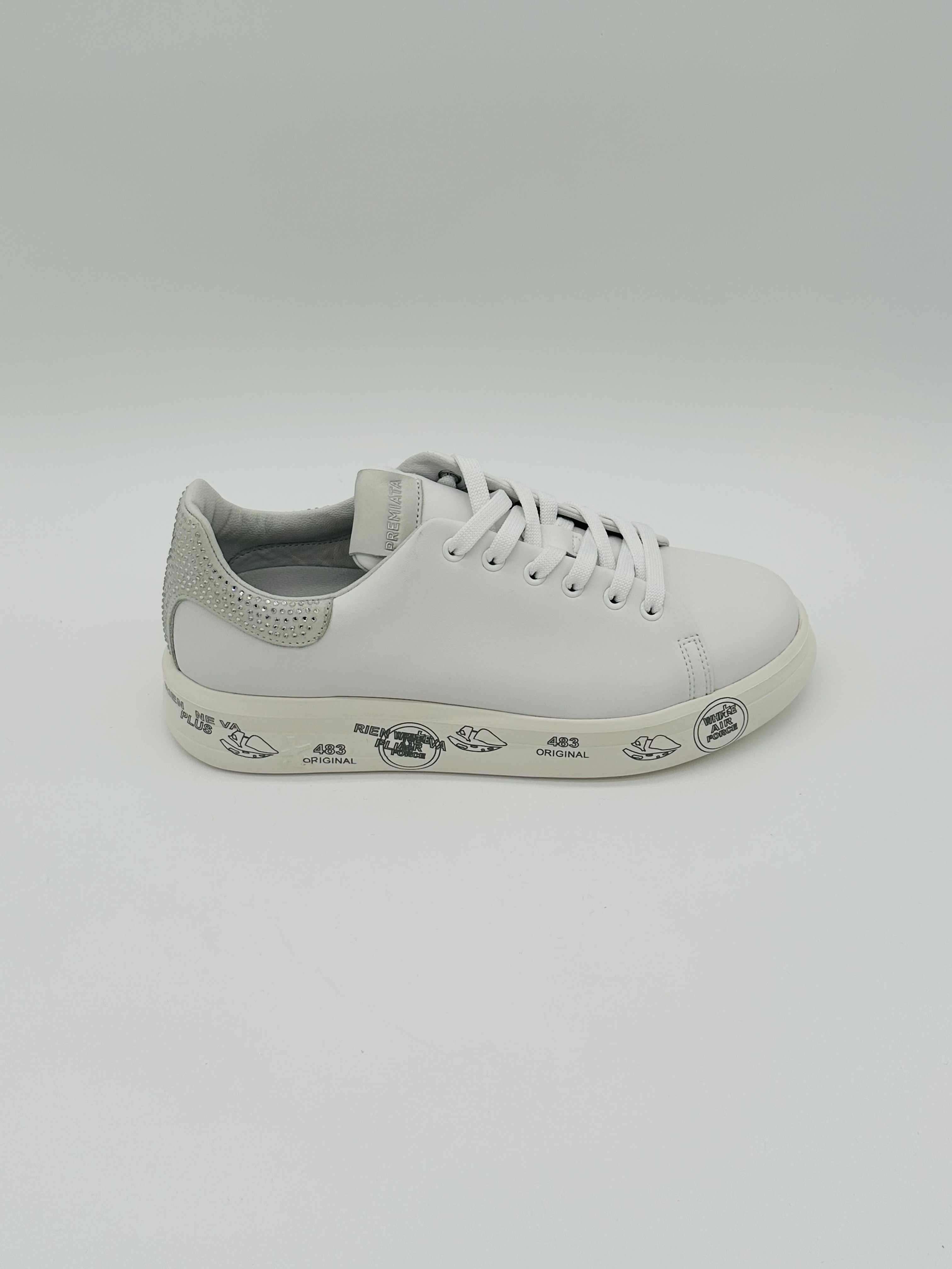 Scarpa Belle donna premiata bianco in pelle con swarosky posteriori