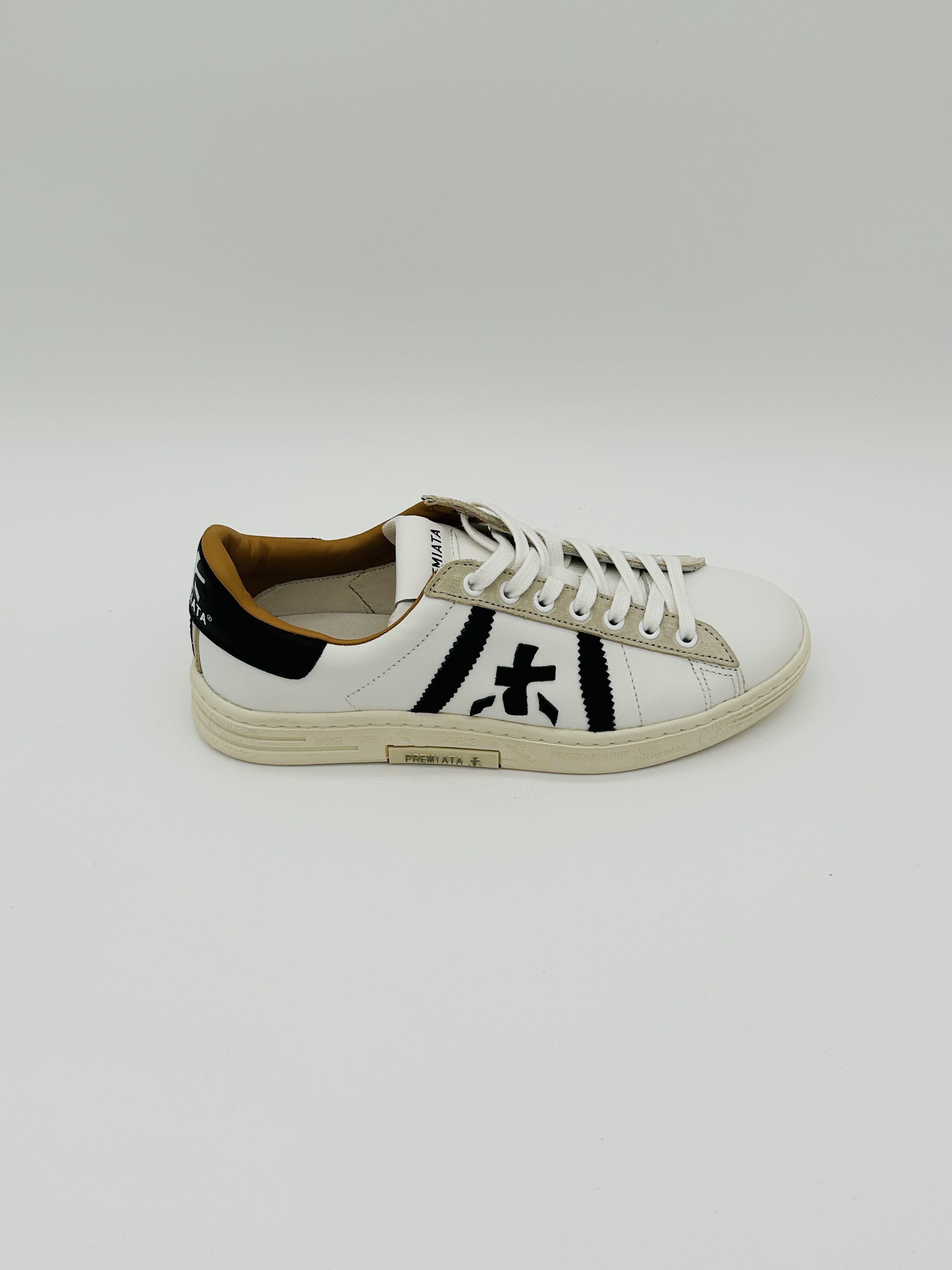 Scarpa Russel uomo premiata bianco nero e marrone in pelle